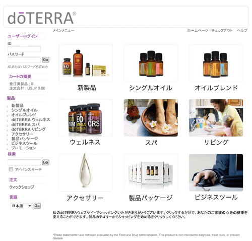 ご購入したいカテゴリーの選択 ・新製品 ・シングルオイル ・ブレンドオイル ・ウェルネス(サプリメント) ・スパ(スキンケア等) ・リビング(日用品) ・アクセサリー ・製品パッケージ